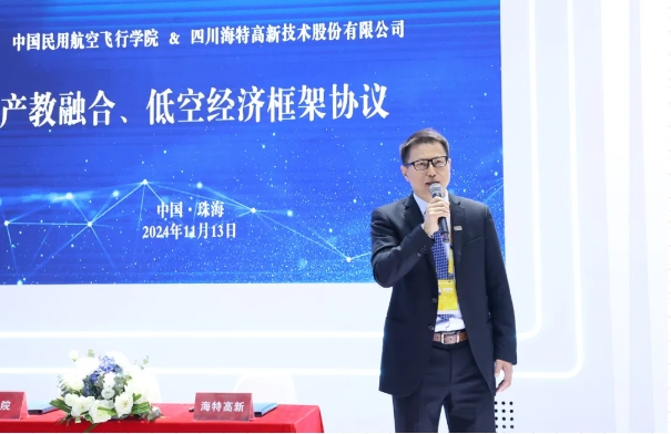 平博手机版副总裁、海特高新董事长万涛发表致辞。他表示党的二十大明确提出要大力发展通用航空和低空经济,低空经济已成为国民经济发展的重要引擎。海特高新与中国民航飞行学院将抓住产业发展的窗口期,在人才培养、成果转化、创新平台建设、产业规模壮大等方面深入合作。相信双方的合作将结出丰硕成果,为通用航空产业和低空经济的高质量发展贡献力量。